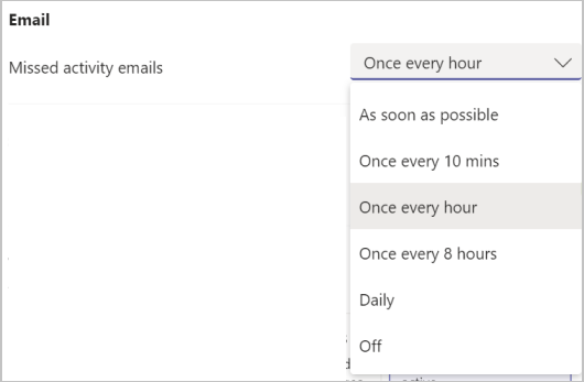 En Correos electrónicos de actividad perdida,elija la frecuencia con la que recibe correos electrónicos de una actividad perdida o descáyales por completo.
