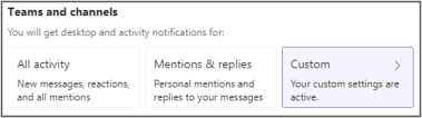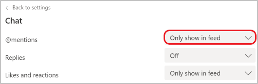 Seleccione Editar junto a Chaty, a continuación, elija Mostrar solo en fuente para una categoría específica. Todas las notificaciones de ese tipo de actividad se enviarán a Actividad , que puede encontrar en la esquina superior izquierda de Teams.