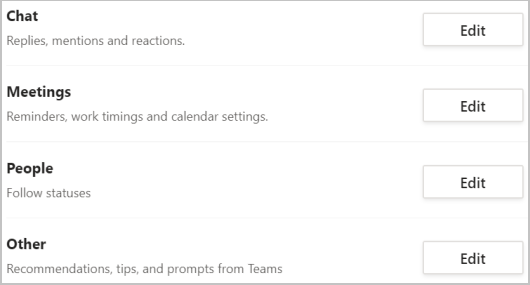 Elija el botón Editar situado junto a la categoría para personalizar cómo recibe las notificaciones de esa categoría.